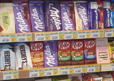 Am nächsten Tag fahren wir weiter nach Dammam, eine Industriestadt. Wir erkundigen uns nach einer Unterstellmöglichkeit für unseren „Karli“ im Sommer. Leider erfolglos. Gefrustet verlassen wir die Stadt mit einem Trost: ich entdecke in einem Laden Milka Schokolade. Keine Ritter Sport. Aber in der Not tut es auch mal eine andere Firma.