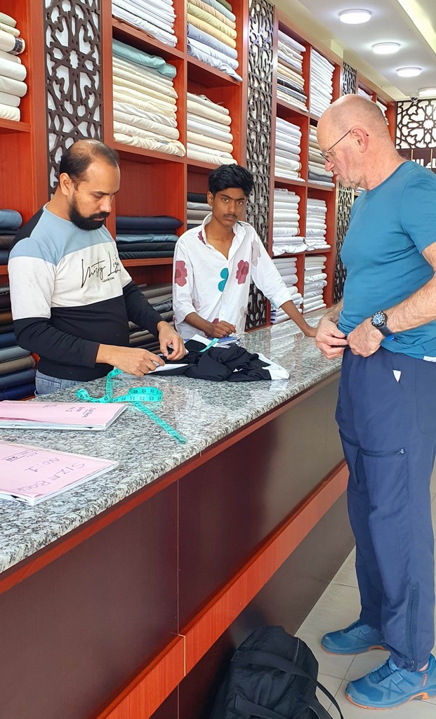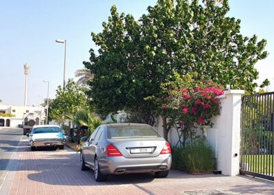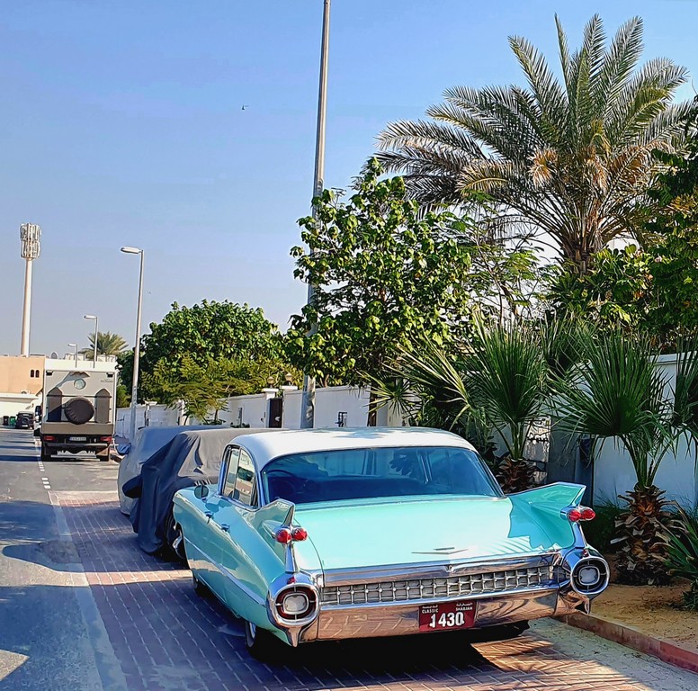Am Abend unserer Ankunft finden wir in einem schicken Wohnviertel einen Übernachtungsplatz. Kaum angekommen, steht ein Herr mittleren Alters vor unserer Tür. In ausgefransten Hosen und verwaschenem T-Shirt bietet er seine Hilfe in perfektem Englisch an: „Come to me, whenever you need anything“. Er wohnt nur ein Haus weiter. Als wir später daran vorbeilaufen, steht hinter dem Eingangstor eine mächtige Villa mit mindestens zehn Nobelkarossen, die ich nur von Bildern her kenne. Auch das ist Dubai. Nach drei Tagen sind wir von der Mächtigkeit dieser Stadt wie erschlagen. Es zieht uns wieder in die Natur. Musandam ruft.