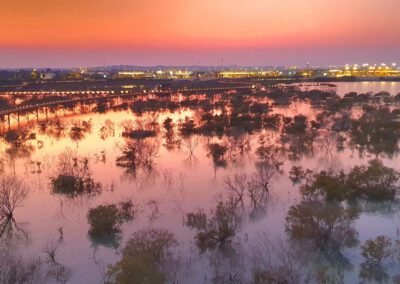 Kurs Ost-Südost, Richtung Vereinigte Arabische Emirate. Bisher hatten wir nur von den Städten, Katar, Bahrain, Abu Dhabi und Dubai gehört, aber solche Städte noch nie gesehen. Dubai ist unser Ziel, da wir auch dringend nach einer Unterstellmöglichkeit für „Karli“ suchen. Endlose Weiten liegen links und rechts unseres Weges, gespickt von Ölraffinerien, Industriegebieten – eine monotone und eintönige Landschaft.