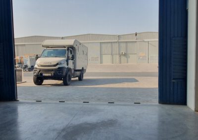 In Dubai werden wir fündig. Eine Halle, in der bereits viele Fahrzeuge stehen, soll Karli’s Sommerresidenz werden. Nicht billig, aber wir sagen zähneknirschend zu.