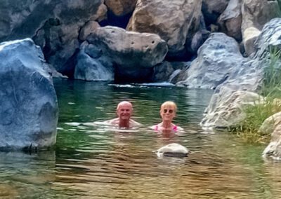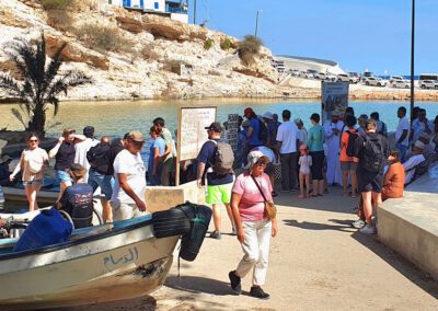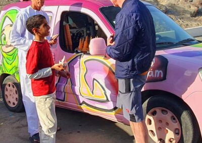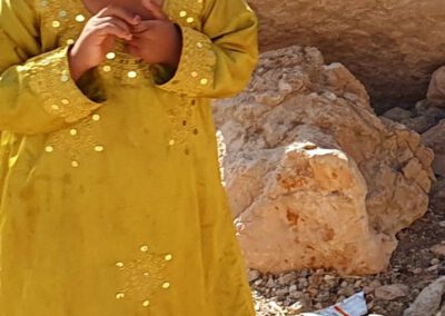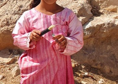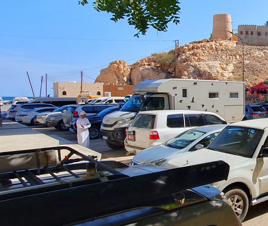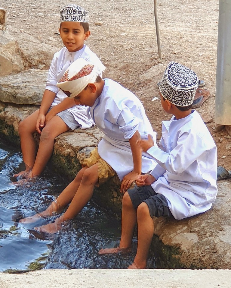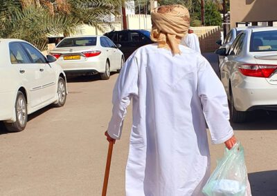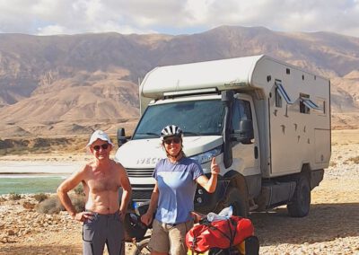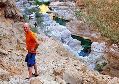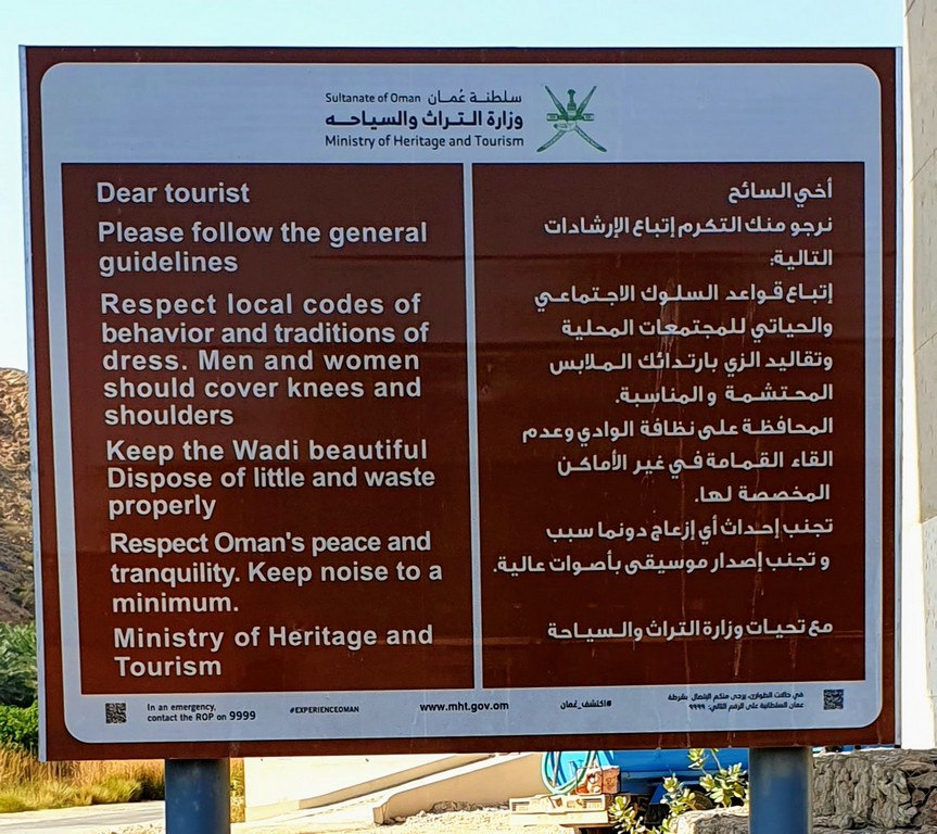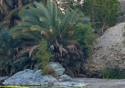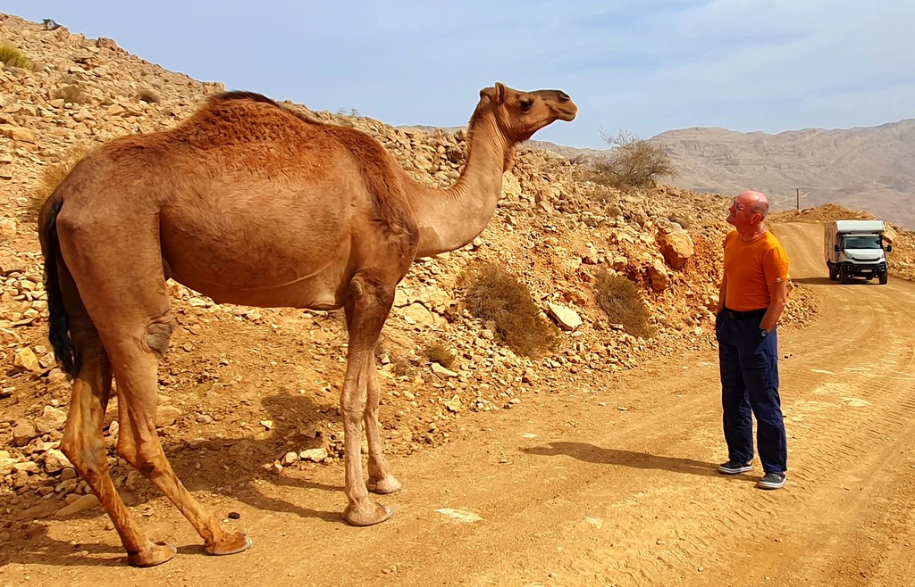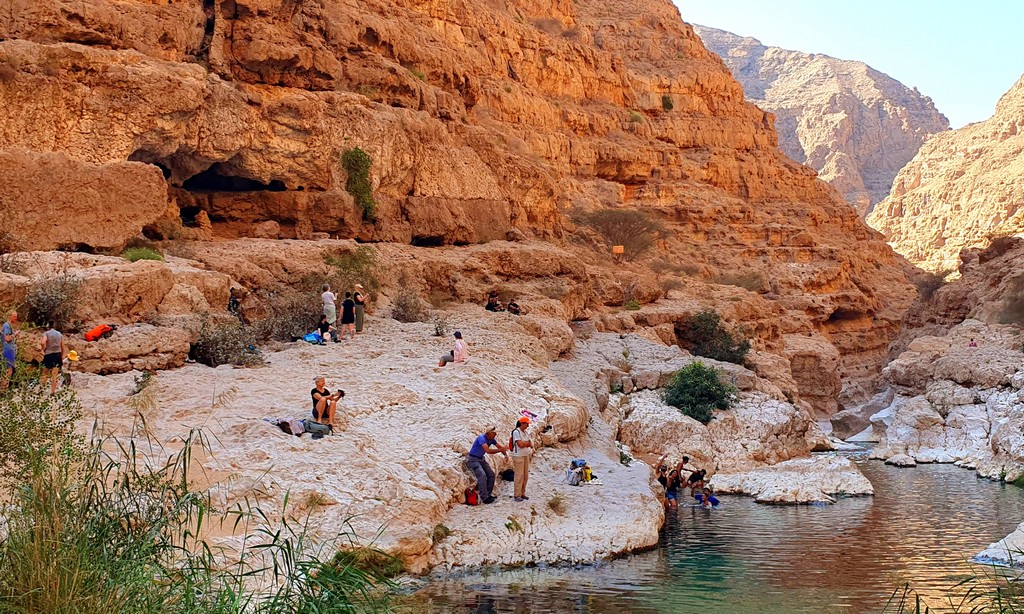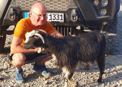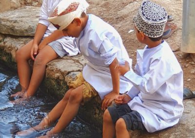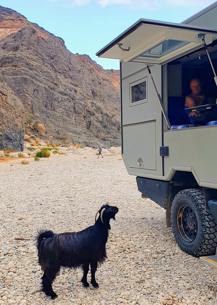 Am Talboden des Wadi Arbeieen kommen wir zur Ruhe und können erst mal wieder durchschnaufen. Wären da nicht mindestens 15 SUV`s beladen mit Touristen. Und dazu auch noch mit Deutschen, die direkt von „Mein Schiff“ kommen zu einem Ausflug hierher. Wir sind es gar nicht mehr gewohnt mit so vielen Deutschen zu reden, und wir spüren, daß diese Art ein Land zu bereisen so gar nicht unser Ding ist. Wir lieben das Abenteuer und die Mischung von Einsamkeit, Wildnis und den landeseigenen Menschen mit ihrer für uns fremdartigen Kultur. Es vergeht kein Tag, an dem wir nicht von den Omanis angesprochen und oft auch eingeladen werden.