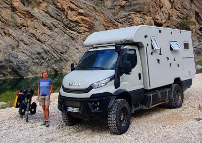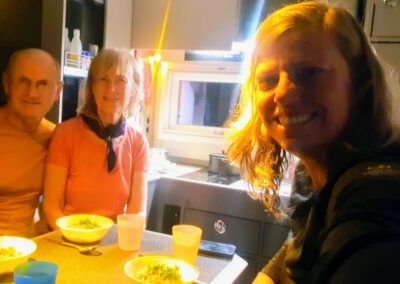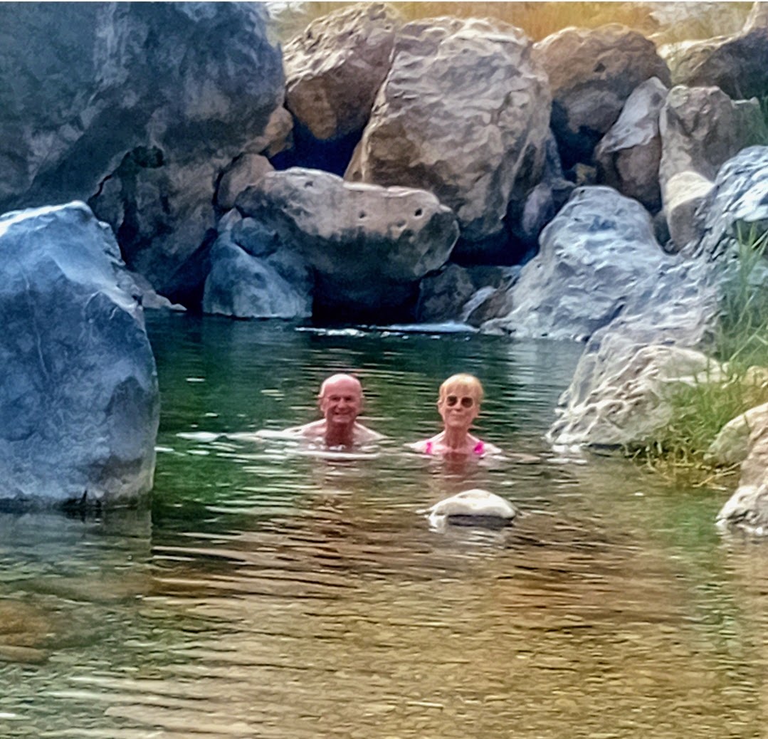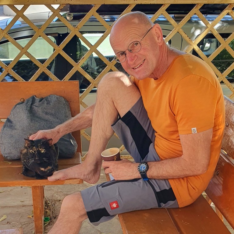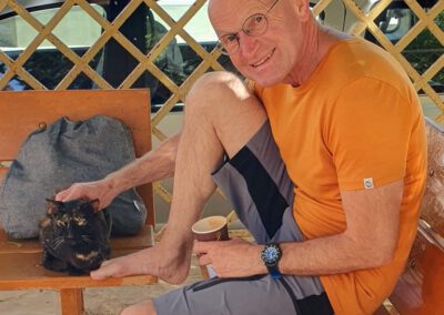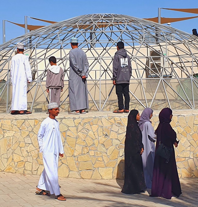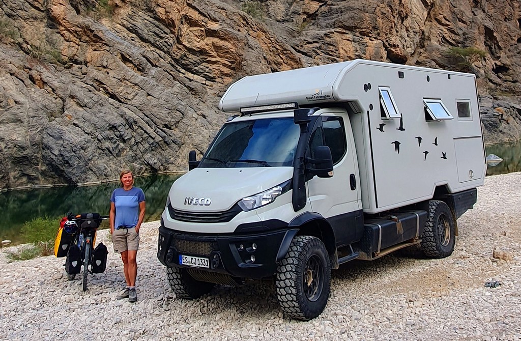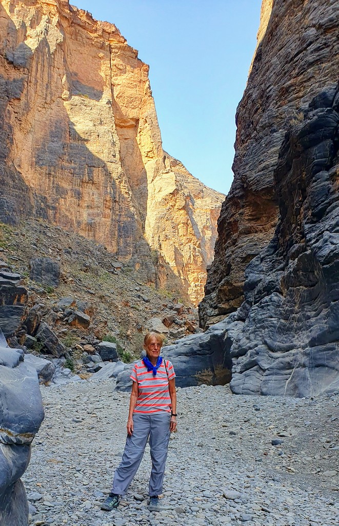 Doch da gibt es eine Ausnahme. Da steht doch zwischen den Deutschen ein Girl wie aus dem Nichts. Mit Fahrradhelm und Sportklamotten bekeidet spüren wir, daß sie nicht zu diesen Touristen gehört. Und wie der Zufall es will. sie kommt aus Speyer, meiner Heimatstadt und kennt sogar meine Schwester. 10.000 km entfernt im fernen Oman. Welch ein Zufall. Wir verbringen nette Stunden mit Ursel aus Speyer. Sie hat sich für 18 Monate eine Auszeit genommen, ist am 1. Mai 2025 von zu Hause gestartet und bereist mit ihrem Fahrrad verschiedenste Länder. In Speyer wollen wir uns im nächsten Jahr dann mal treffen.