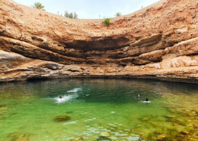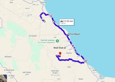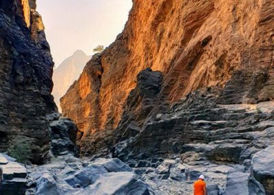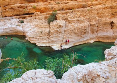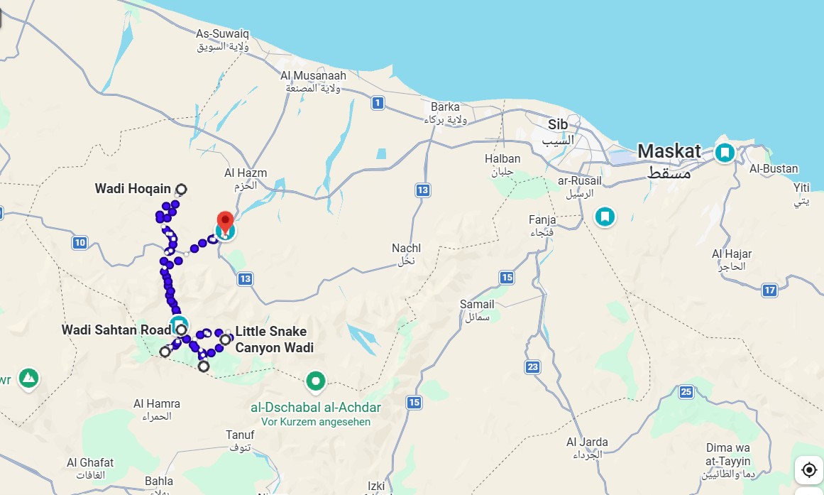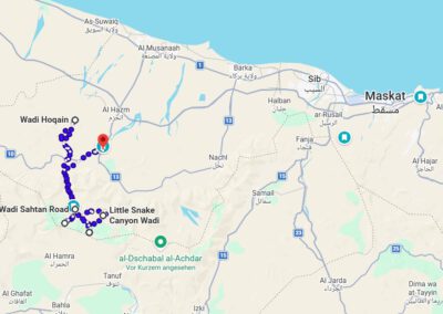 Von Muscat zum Wadi Hoqain und dem „5 elements village“ zum Little Snake Canyon und Snake Canyon und ins Dorf Bald Sait – Fahrt zurück über das Wadi Sahtan und weiter nach Rustaq