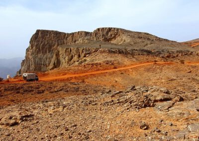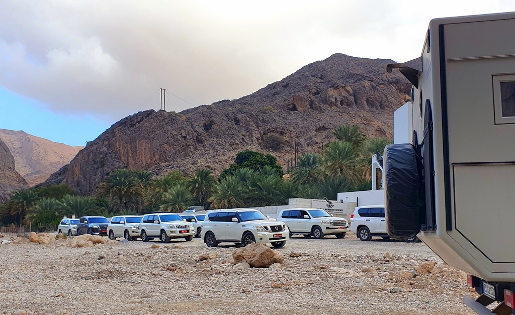 Wir sind angekommen im „großen Oman“. Schwerpunkt soll die nächsten Tage das „Hajar Gebirge“ werden. Ein über 3.000 m hohes Gebirge mit wahnsinnigen Canyons und Schluchten und den vielversprechenden Wadis. Von anderen Reisenden haben wir erfahren, wie steil und nicht ganz einfach die Pisten zu befahren sind. Noch steckt uns das Erlebnis der abgebrochenen Pistenfahrt in Musandam in den Knochen. Doch wir haben dazu gelernt, wie so oft auf dieser Reise. Wer nichts wagt, der nichts gewinnt, so unser Motto.