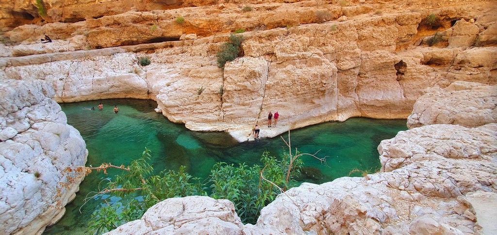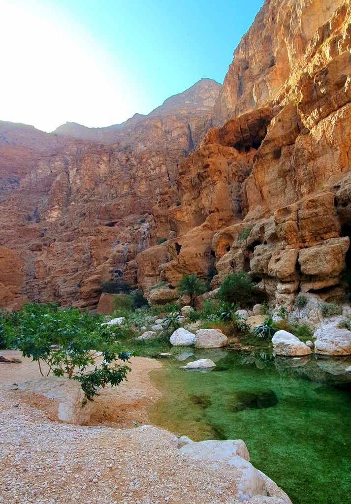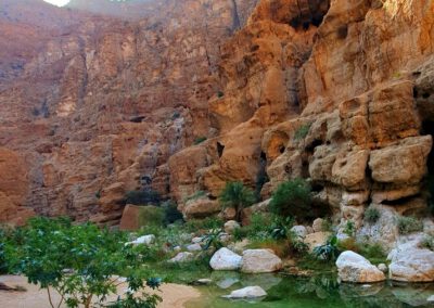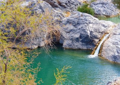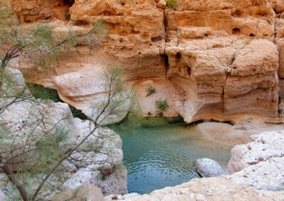Ebenso interessant sind die Wadis. Das sind Schluchten und Canyons, an deren Talboden sich oft ein Flussbett entlangschlängelt. Diese Wadis können schmal oder kilometerbreit und lang sein. Je nach Dauer und Intensität der Regenfälle bilden sich Wasserfälle und Wassergumpen, die zum Baden einladen. Ausgehend vom riesigen Hadschar-Gebirge verlaufen diese meistens in West-Ost-Richtung zum Meer hin.