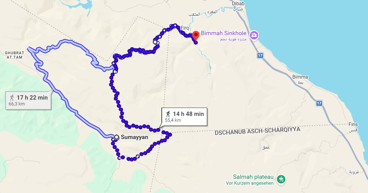 Von Rustaq aus über Sumayyah aufs Salmah Plateau und wieder runter zum Wadi Arbeieen