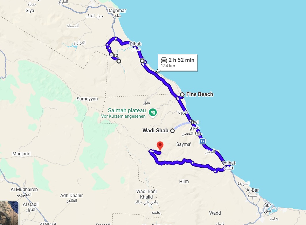 Übers Sinkhole ans Meer mit nächtlicher Abholaktion von Ursel und weiter zum Wadi Shab und Wadi Tiwi