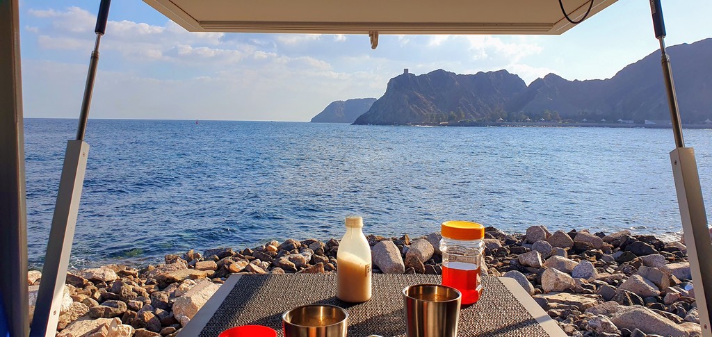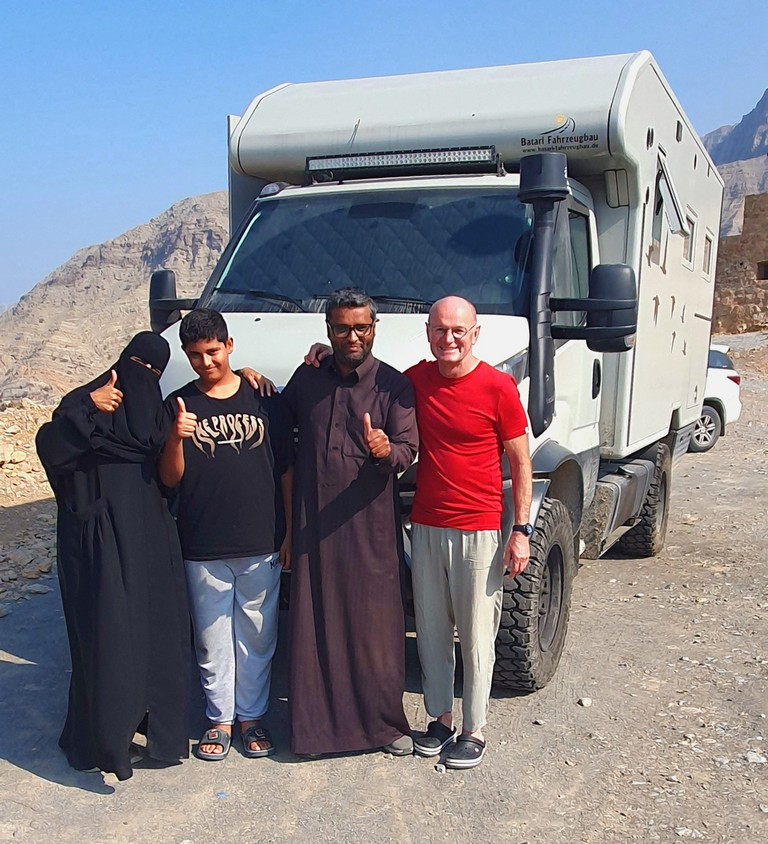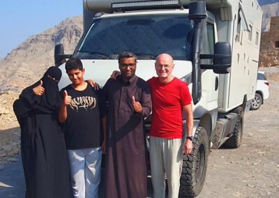 Oman hat ca. 4,5 Millionen Einwohner. Davon leben 2,5 Millionen in den größten Städten Muscat und Salalah. Der Rest verteilt sich auf den Rest des Landes. Dabei ist der Oman nur geringfügig kleiner als Deutschland. Die Haupteinnahmequellen sind Ackerbau und Viehzucht. Öl-, Gashandel und natürlich der Tourismus. Dieser entwickelt sich rasant. Wir treffen eine Menge Touristen, vor allem aus Deutschland und den Nachbarländern. Die Vielfalt an Natur, die Abwechslung und die omanische Gastfreundschaft hat Oman zu einem beliebten Reiseziel werden lassen. Während wir den Tourismus eher meiden, treffen wir immer wieder Overlander, übersetzt Langzeitreisende, mit denen wir unsere Zeit gerne verbringen.