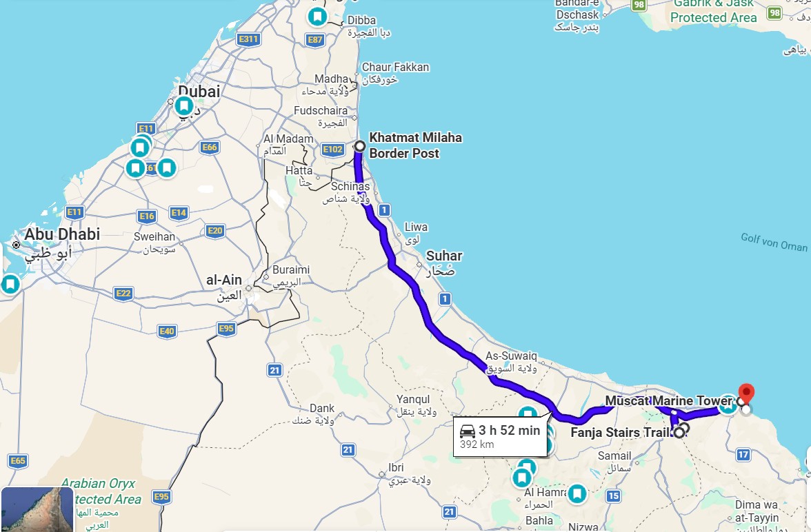 Wir verlassen Musandam, fahren erneut durch die arabischen Emirate und passieren dann wieder die Grenze zum Oman.