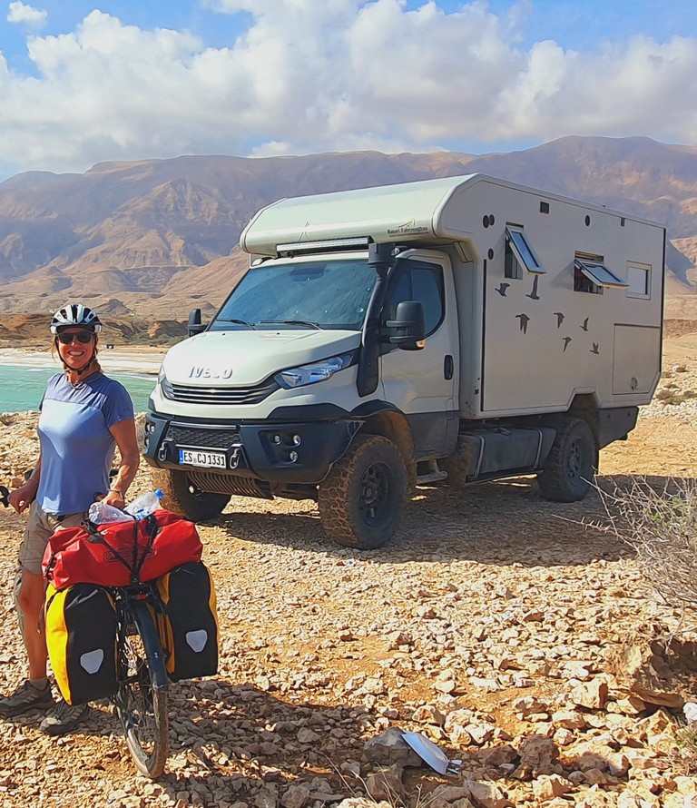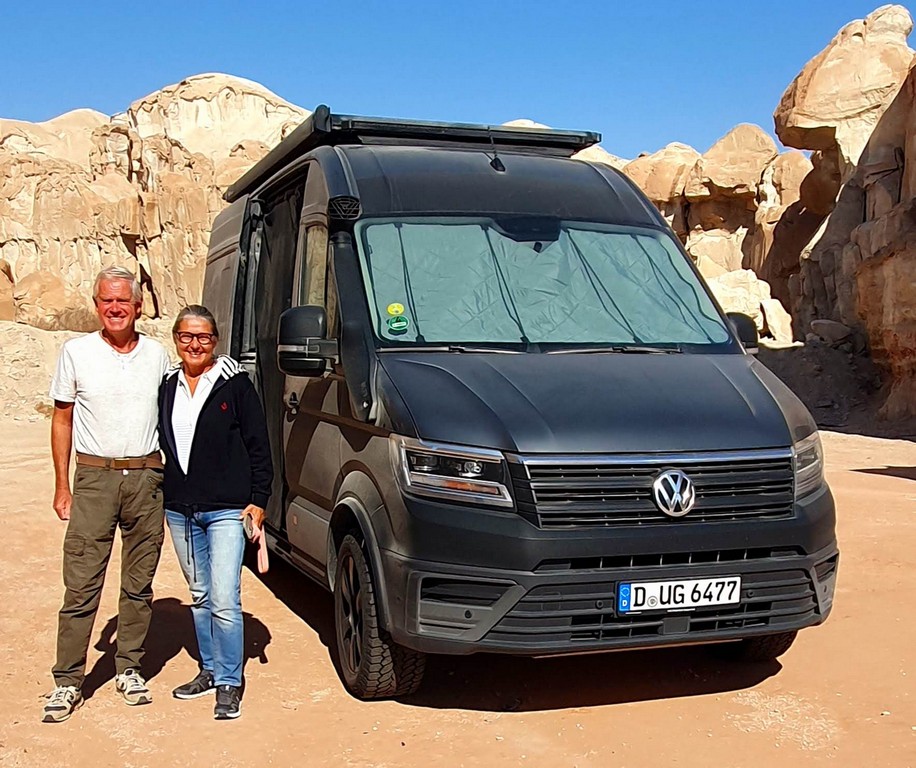 Paola und Toni aus München in Deutschland, unterwegs mit ihrem Wohnmobil auf der Arabischen Halbinsel. Kennengelernt haben wir uns im Januar 2026 in Muscat im Norden von Oman und wieder getroffen im Februar 2026 am Coconut Beach in Salalah im Süden von Oman