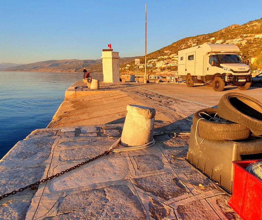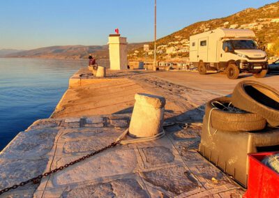 Unsere Reise führt uns weiter über Slowenien, Kroatien, Bosnien-Herzegowina, Montenegro, Albanien immer an der Küste lang. So allmählich stellt sich Routine ein. Die Handgriffe und täglichen Abläufe werden zur Routine. Trotz allem müssen wir uns wieder an die beengten Verhältnisse und die Zweisamkeit gewöhnen. Entschädigt werden wir durch faszinierende Landschaftsbilder, und super schöne Stellplätze. Campingplätze fahren wir nur in Ausnahmesituationen an. Weil wir vielleicht Wäsche waschen wollen, oder am Fahrzeug tätig werden müssen. Das Zigeunerleben schleicht sich ein.
