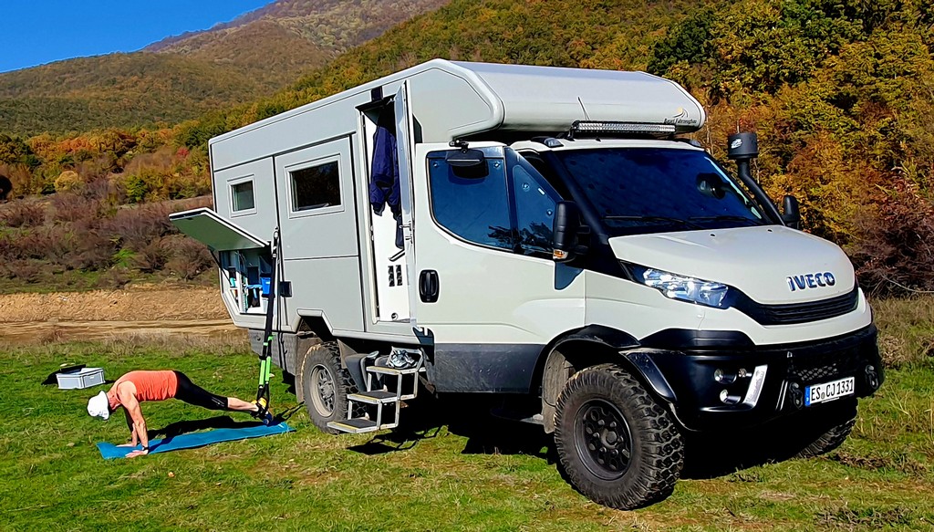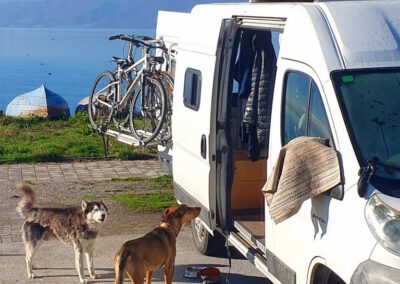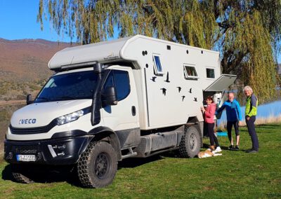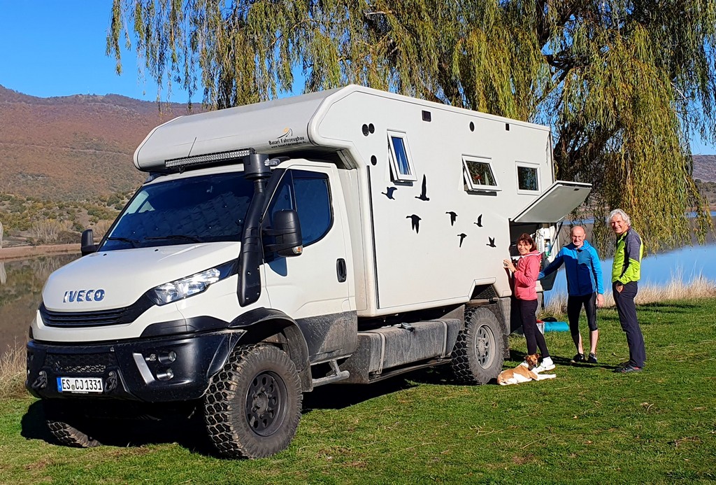 Reisende suchen sich und finden sich. Als Corinne wie jeden Abend ihren Whats App Status schreibt, melden sich Bekannte und erklären, dass zwei weitere Overlander sich in unmittelbarer Nähe befinden und wir gerne Kontakt mit ihnen aufnehmen können. Es sind Ingrid und Wolfgang mit ihrem Hund Spezi. Ebenfalls mit einem Iveco Daily unterwegs. Wir treffen uns. Es wird eine interessante, wenn auch kurze Zeit mit den beiden. Unsere Zweisamkeit wurde auf angenehme Art und Weise unterbrochen. Spontane Entschlüsse und Flexibilität sind das „Salz in der Suppe“ bei solchen Reisen.