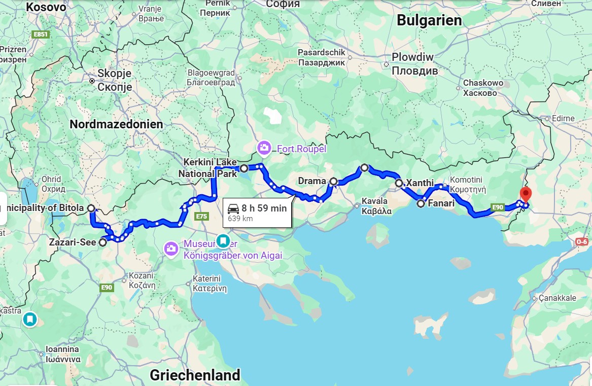 Von Griechenland bis zur Grenze Türkei